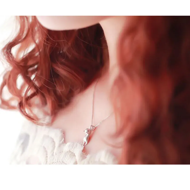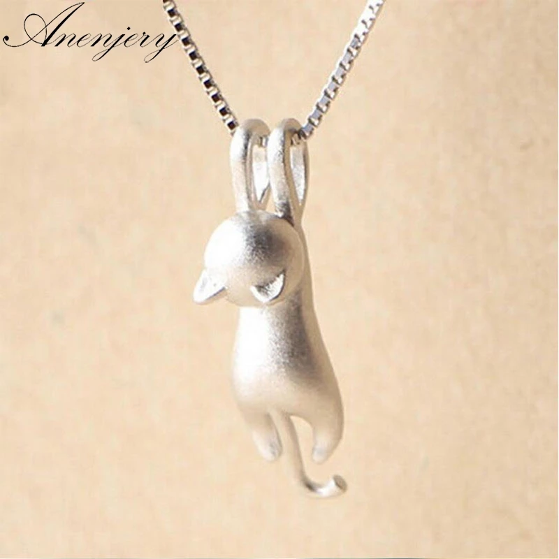 amazing Anenjery 925 Sterling Silver Necklace Cute Cat Animal Pendants&Necklaces For Women choker collares