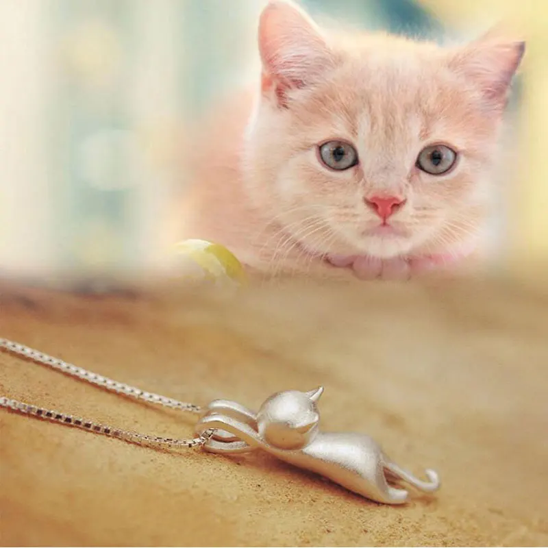 incredible Anenjery 925 Sterling Silver Necklace Cute Cat Animal Pendants&Necklaces For Women choker collares