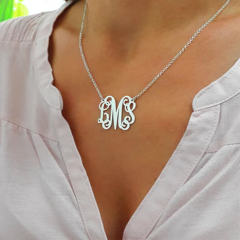 amazing Custom Monogram Necklace Initial Letter Pendant Necklace Stainless Steel Chain Gold-Color Choker fo