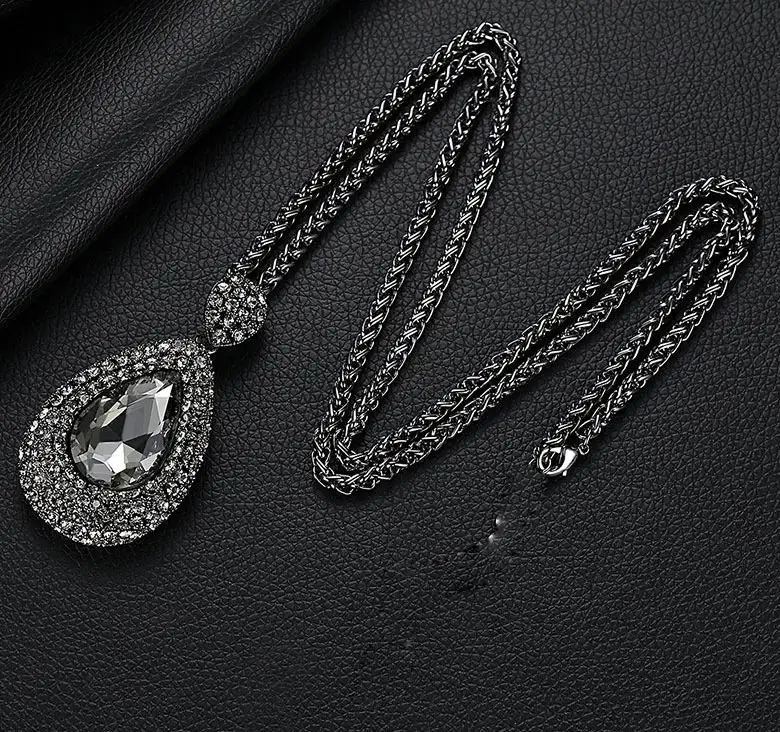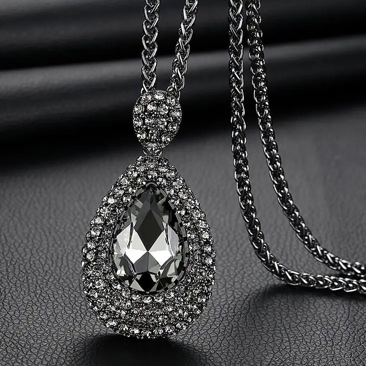 astounding Shinning Water Drop Rhinestone Long Necklace Women Bijoux Fashion Simple Sweater Pendant Jewelry Ac