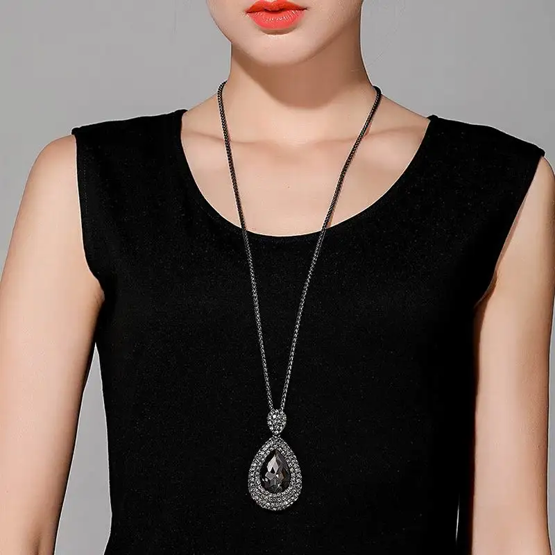 Promo Shinning Water Drop Rhinestone Long Necklace Women Bijoux Fashion Simple Sweater Pendant Jewelry Ac