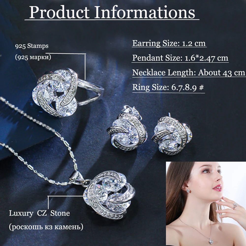 New ThreeGraces New Fashion 925 Silver Jewelry Sets Cubic Zirconia Knot Earrings Necklace and Ring Set