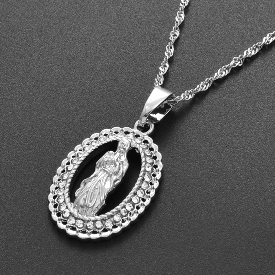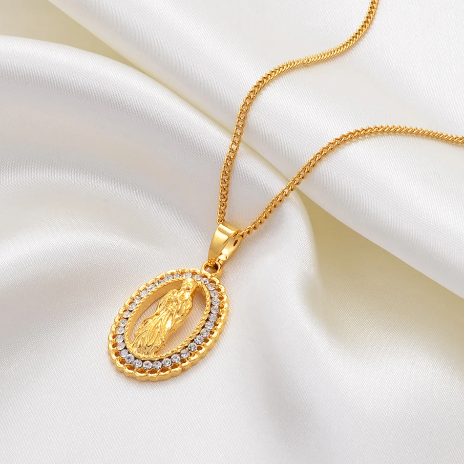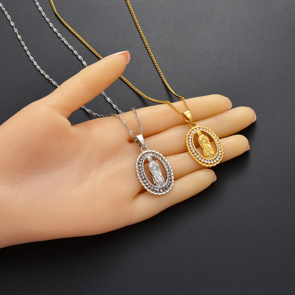 Best Anniyo Virgin Mary Pendant Necklace for Women Girl Silver/Gold Color Our Lady Jewelry Wholesale Col