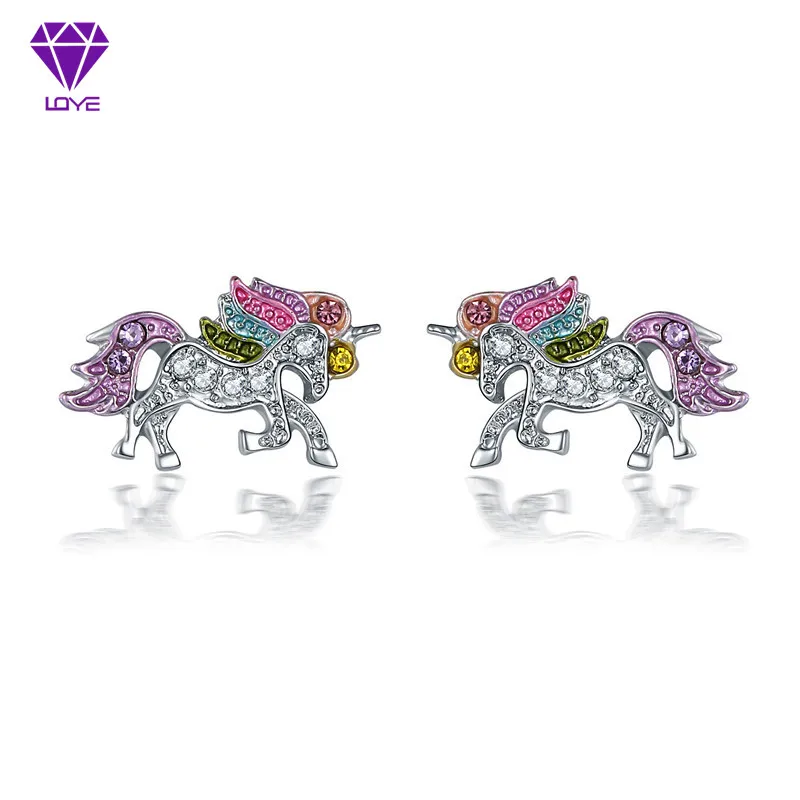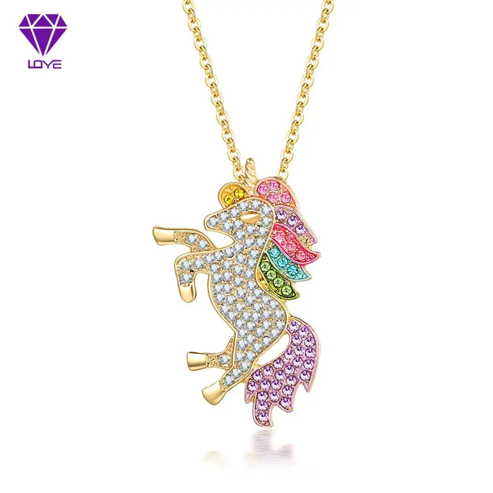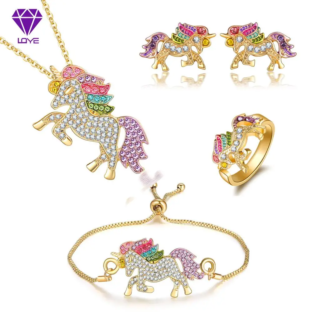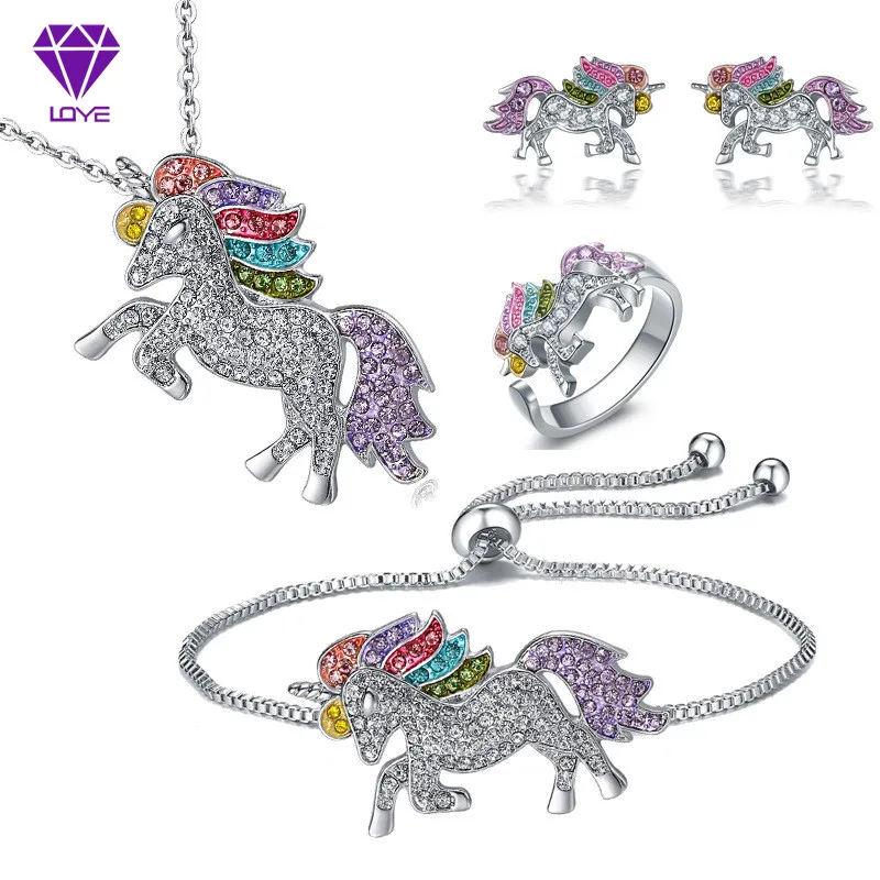 Best Cartoon Colorful Unicorn Necklace Earrings Bracelet Set Valentine's Day Gift Jewelry