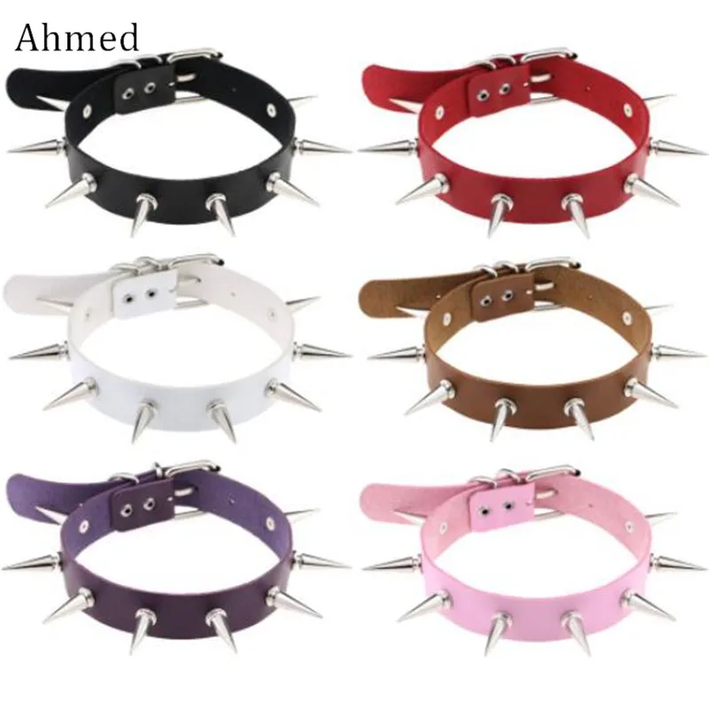 buy Ahmed Harajuku Punk Rivet Choker Belt Necklace for Women Pu Leather Chocker Necklace for Women Part