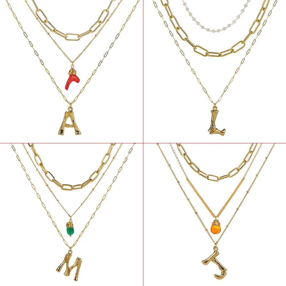 price cut Colorful Letter Big Alphabet Name 26 Initial Pendant Necklace Women Gold Color Natural Pearl Stone