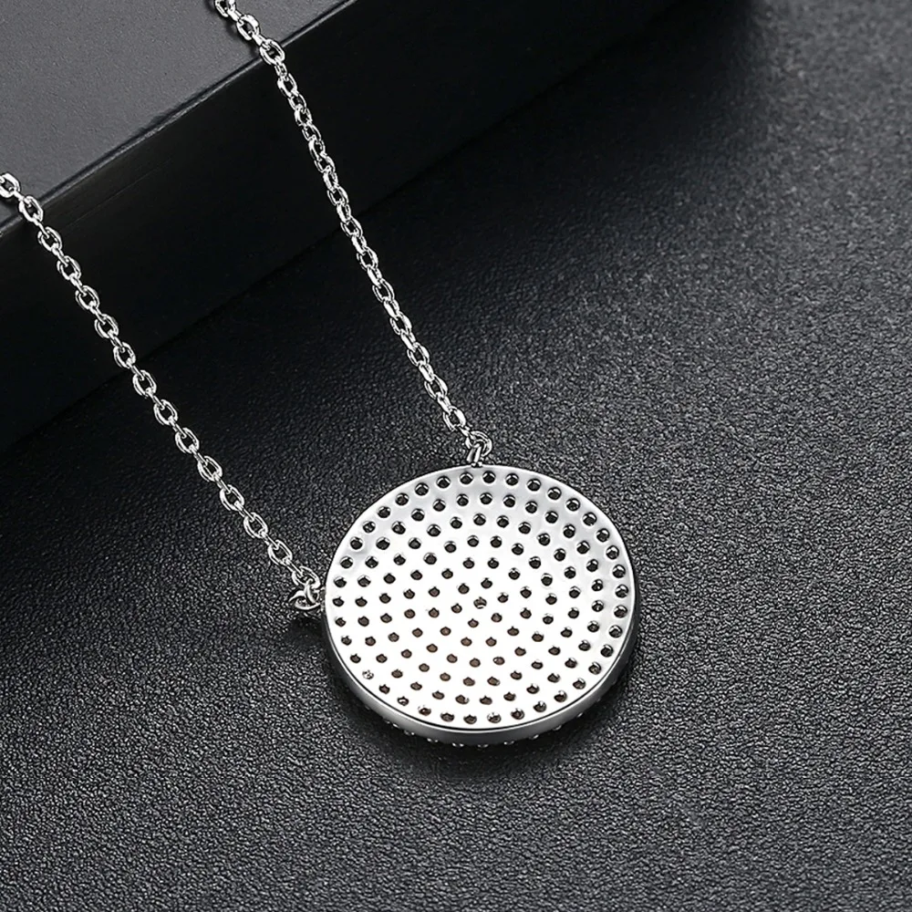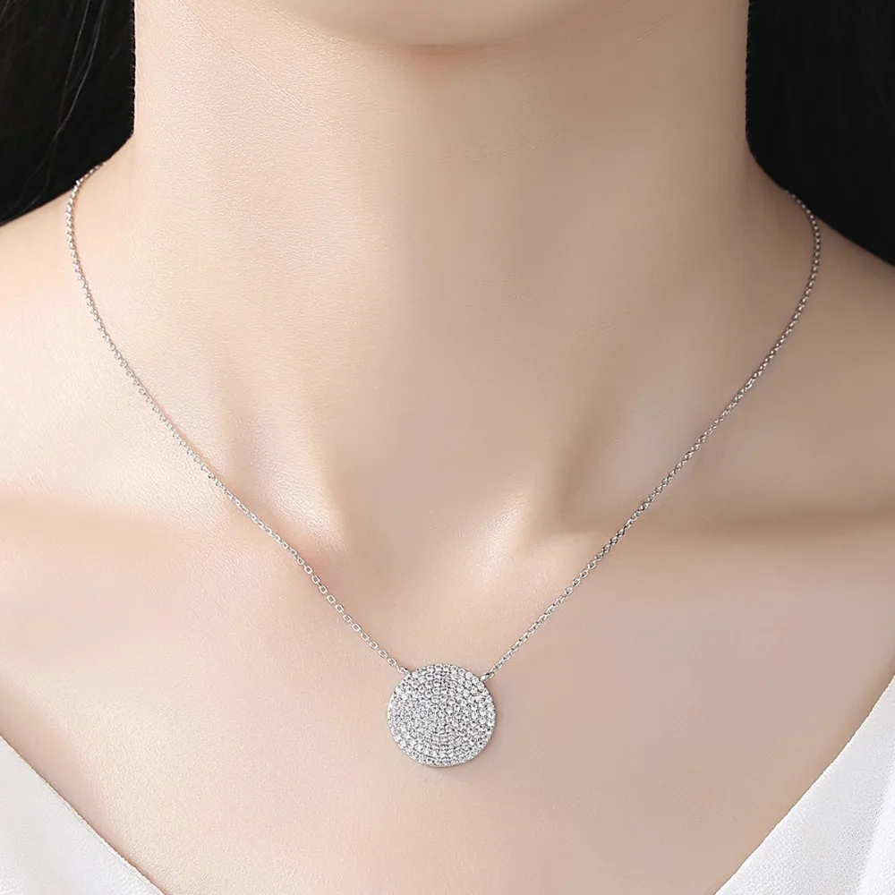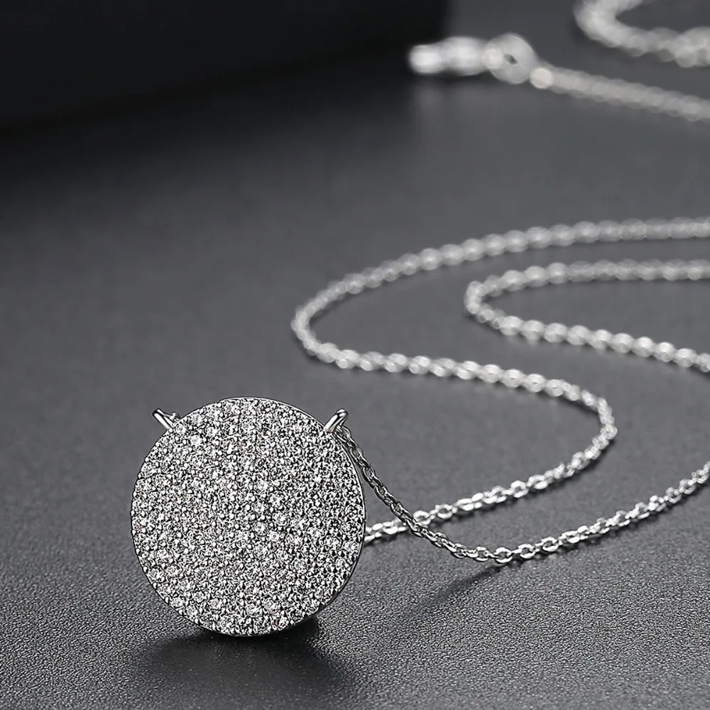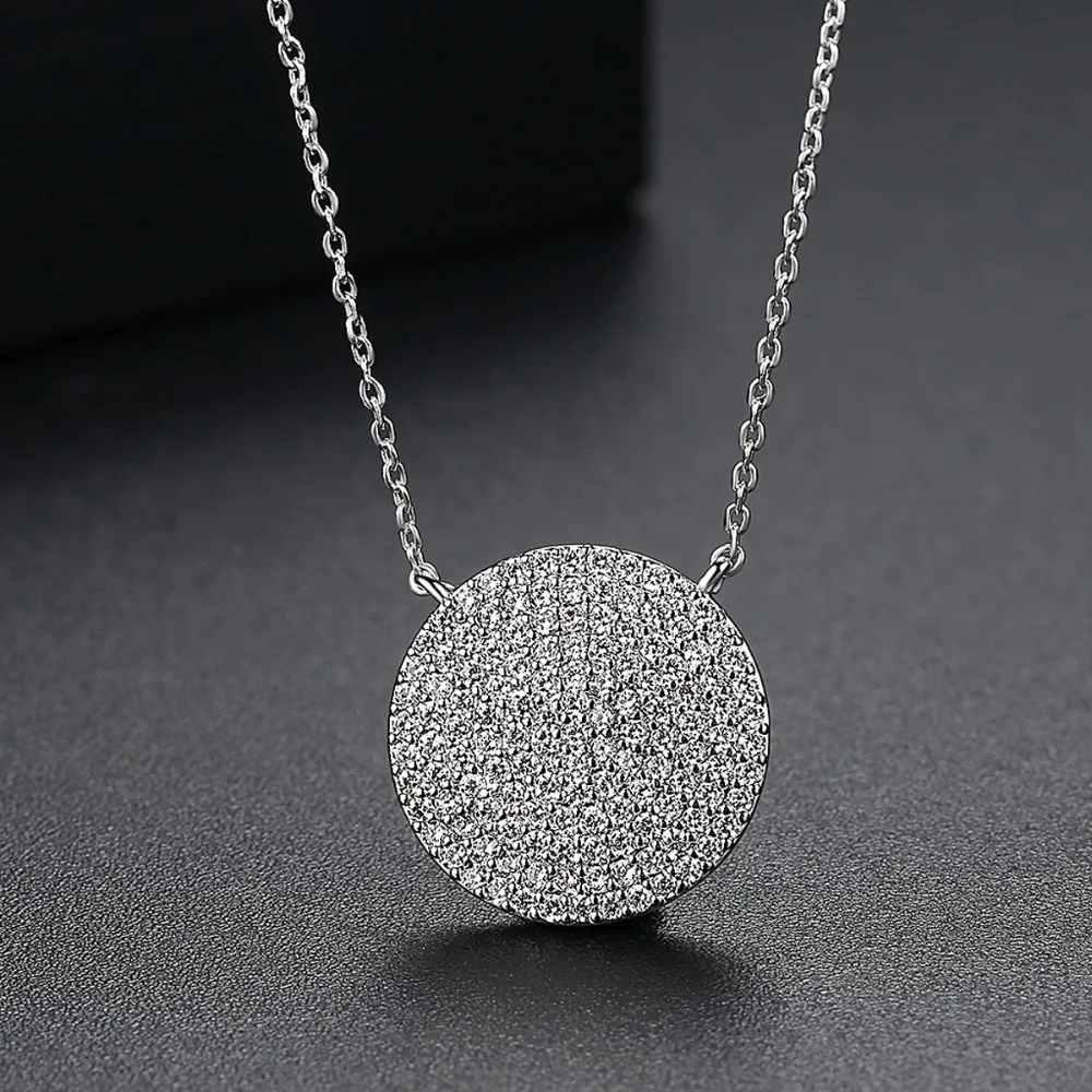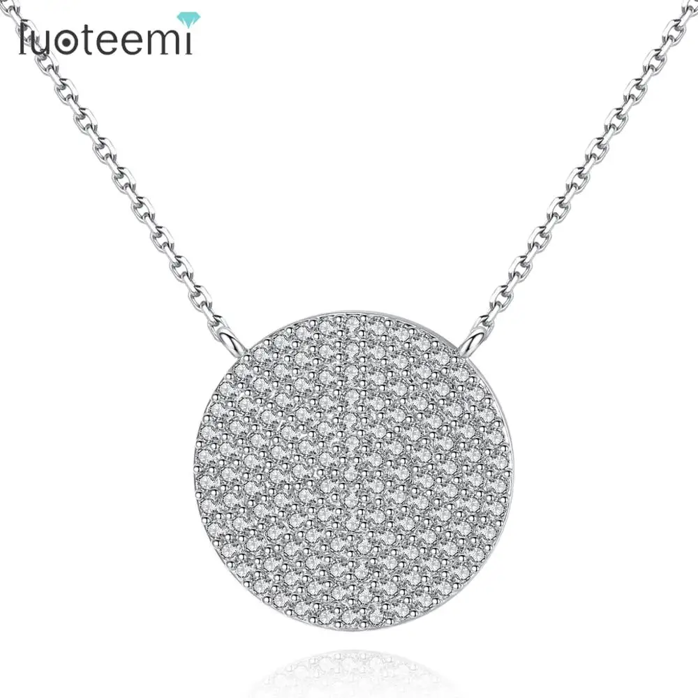 discount LUOTEEMI Trendy Top Quality Clear CZ Crystal Necklace For Women White Gold Color Round Pendant Neck
