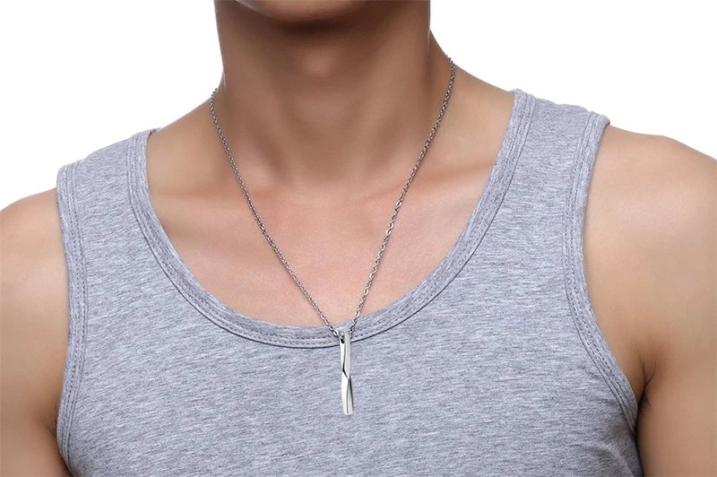 discount Square Twisted Column Pendant Necklace for Men Stainless Steel Male Female Couples Jewelry Oxidatio