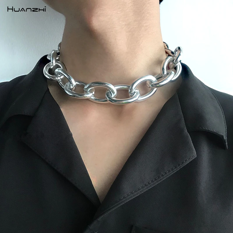 discounted HUANZHI Hip Hop 2019 New Thick Lock Chain Metal Punk Necklace for Women Men Goth Jewelry Harajuku V