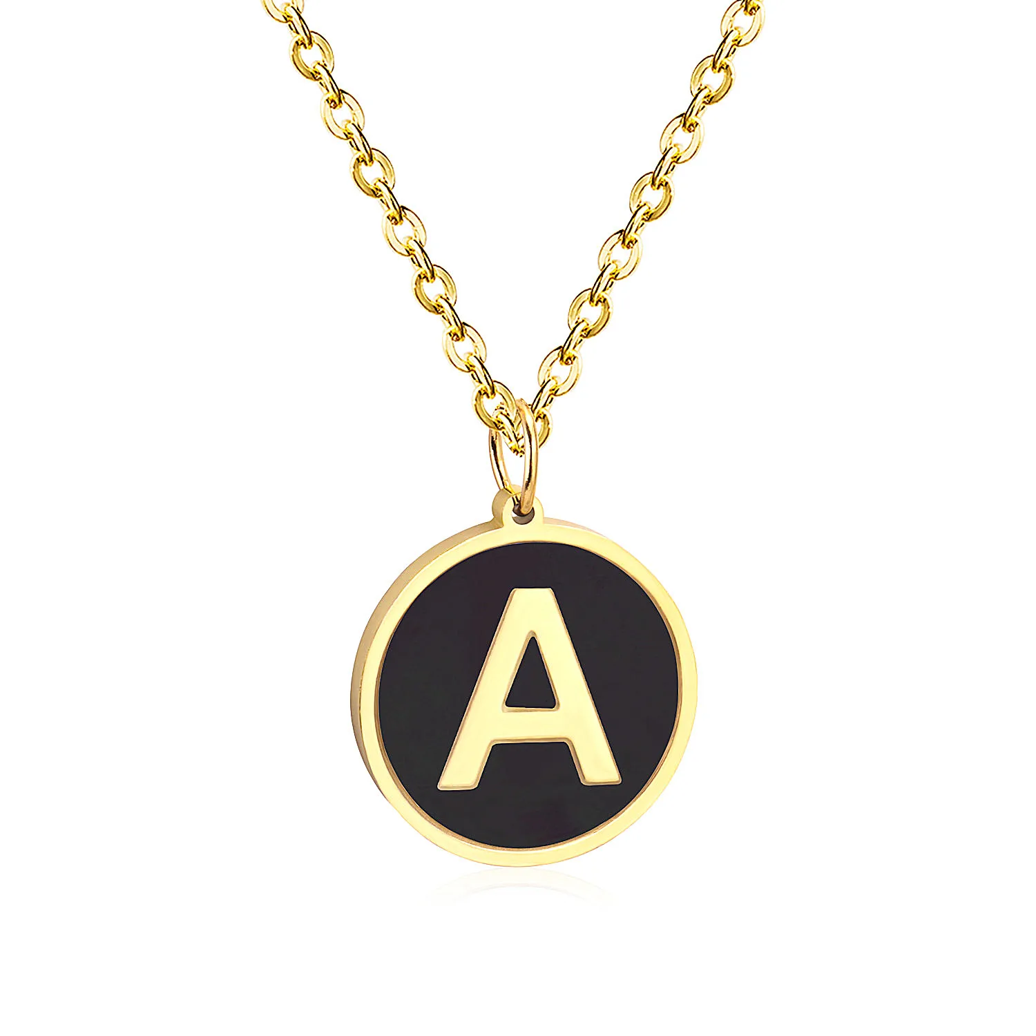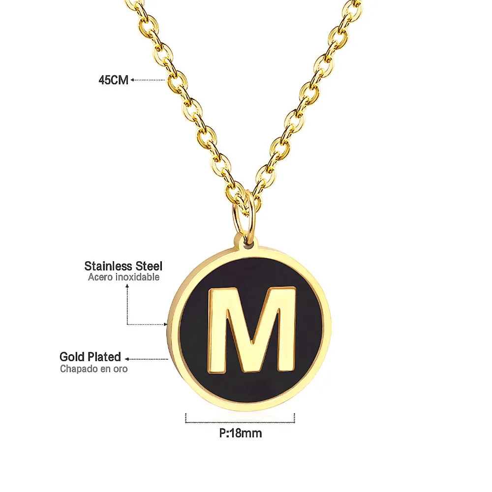 Greatest LUXUSTEEL Gold Black Shell Letter Necklace Pendant Necklace Alphabet Stainless Steel Choker Necklac