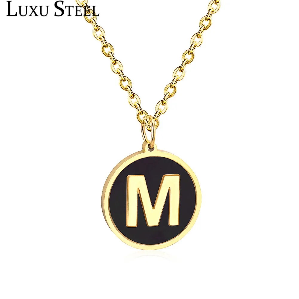 New LUXUSTEEL Gold Black Shell Letter Necklace Pendant Necklace Alphabet Stainless Steel Choker Necklac