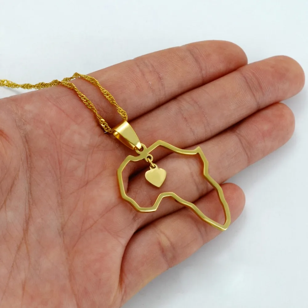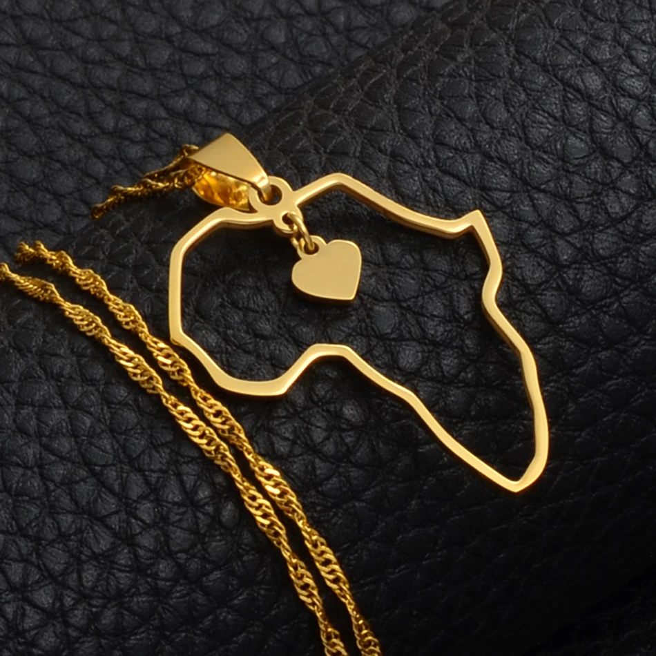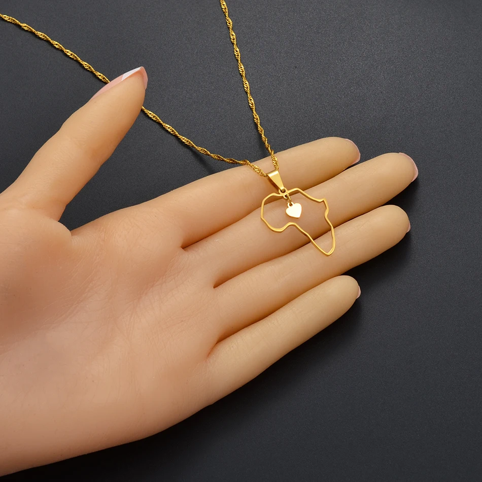 Ideal Anniyo (TWO SIZE) Gold Color Africa Map Pendant Necklaces Women Girls Heart African of Maps Jewelry