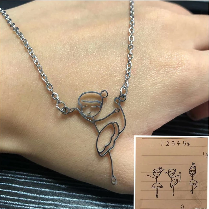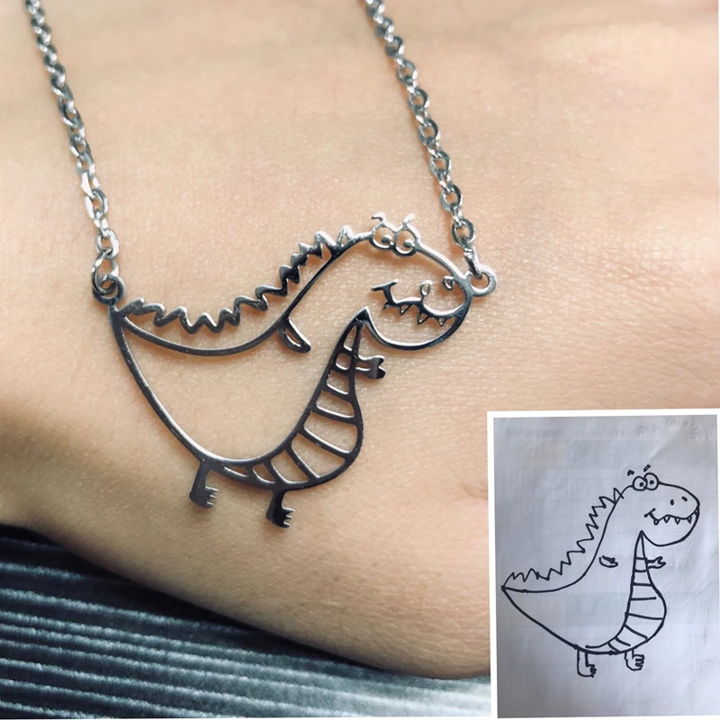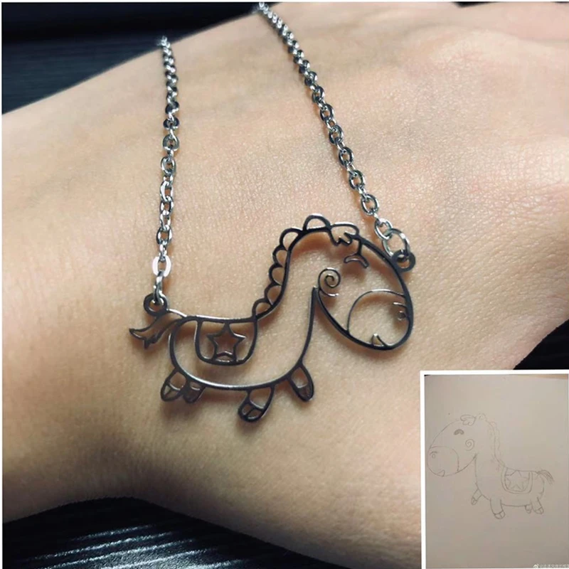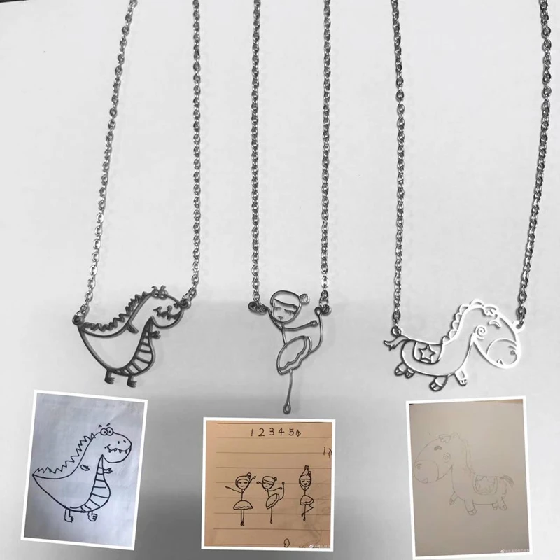 Ideal Customized Children's Drawing Necklace Stainless Steel Kid's Art Child Artwork Personalized Necklac