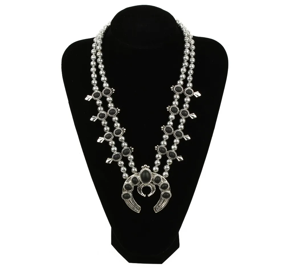 Ideal selling Pumpkin flower necklace Vintage silver stone squash blossom necklace N21789