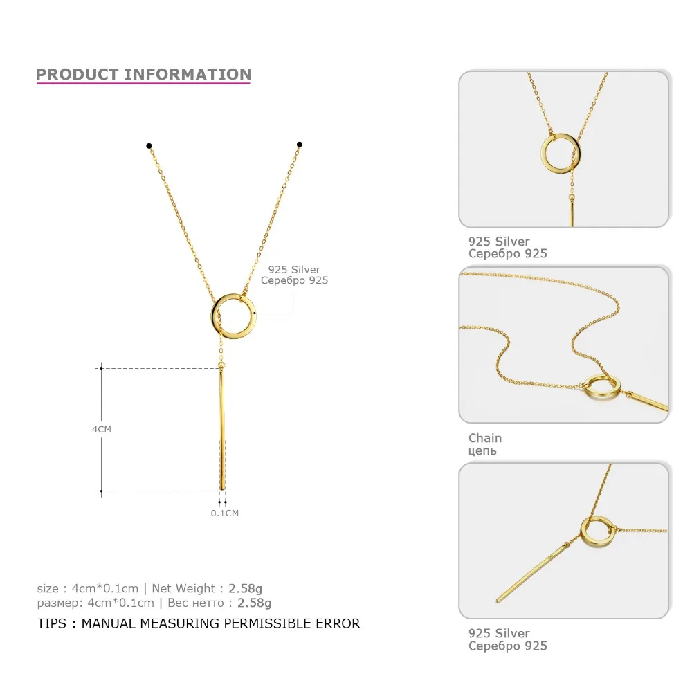 low cost e-Manco 925 Sterling Silver Long Pendant Stick Simple Necklace Minimalist & Romantic Stylish Fine J