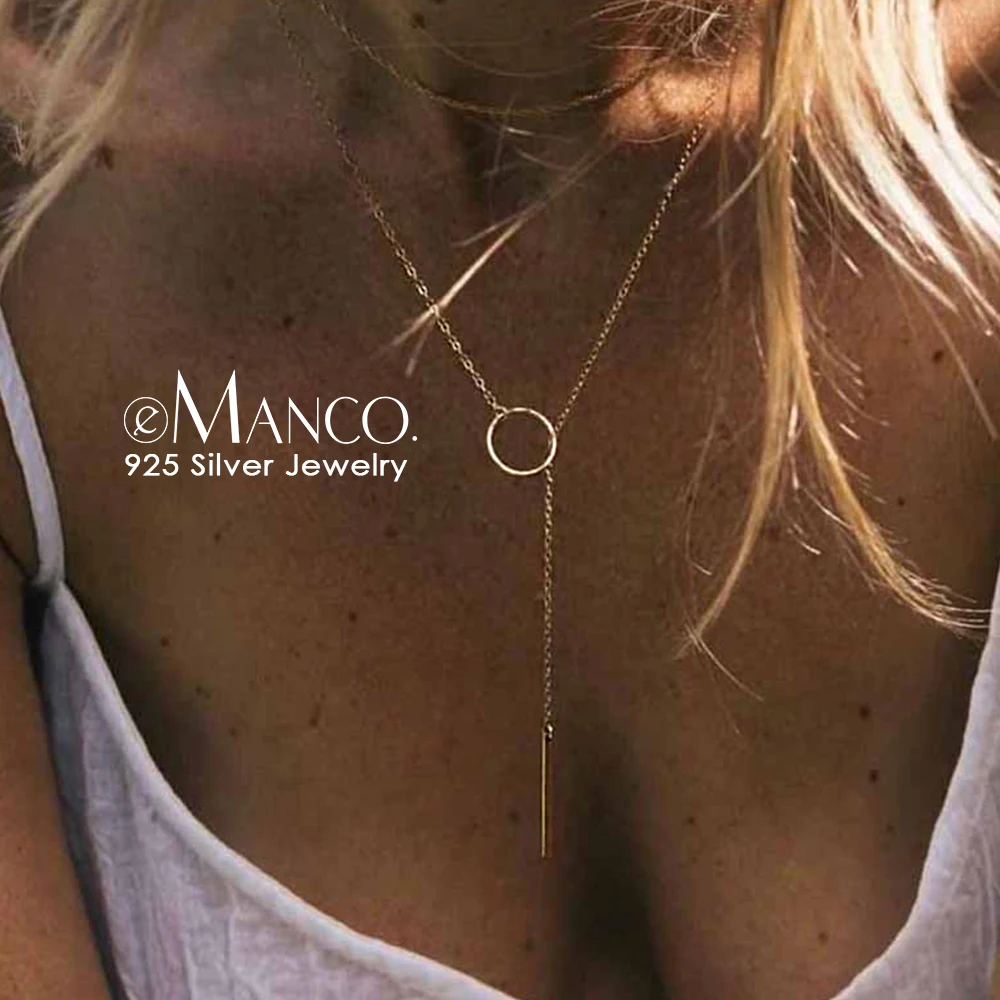 astounding e-Manco 925 Sterling Silver Long Pendant Stick Simple Necklace Minimalist & Romantic Stylish Fine J