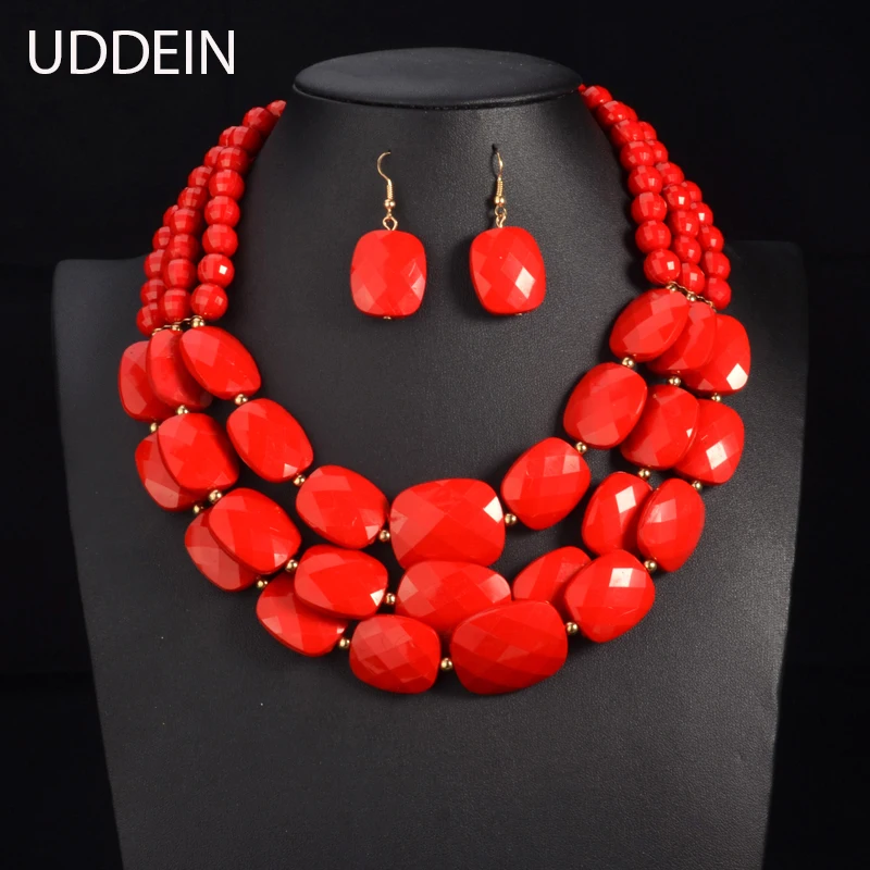 UDDEIN African Beads Jewelry Sets Statement necklace & pendant bib beads handmade jewelry Nigerian Wedding Indian necklace sets,UDDEIN Beads Necklace/Earrings Set Plastic Gem Multi Layer Statement Chokers Wedding Accessories African Beads Jewelry Set, UDDEIN Beads Necklace/Earrings Set Plastic Gem Multi Layer Statement Chokers Wedding Accessories African Beads Jewelry Set