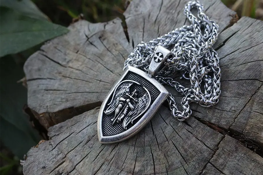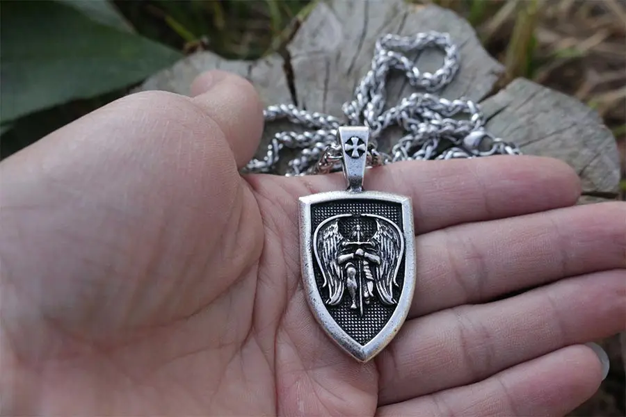 awesome lanseis 1pcs men necklace wing Archangel St.Michael Protect US Saint Shield Protection pendant Reli