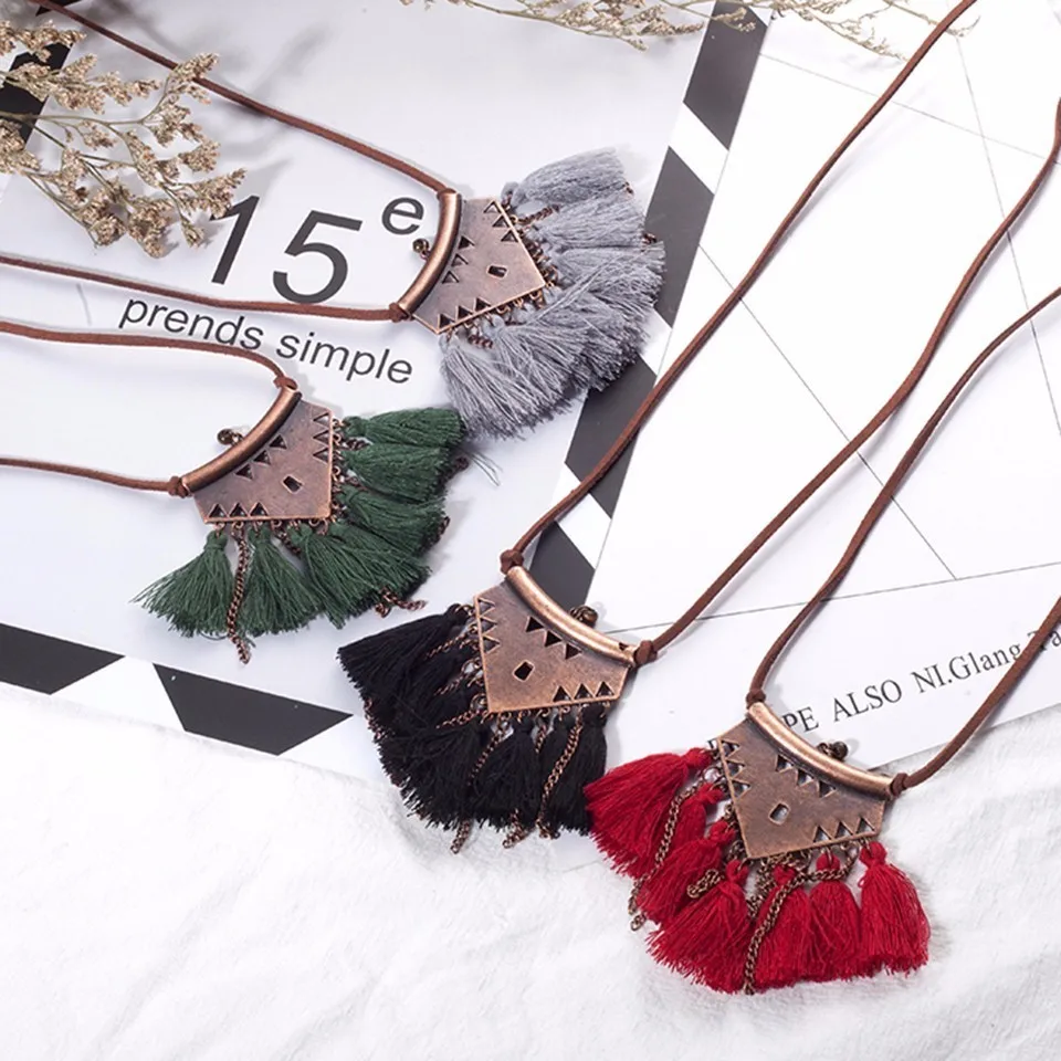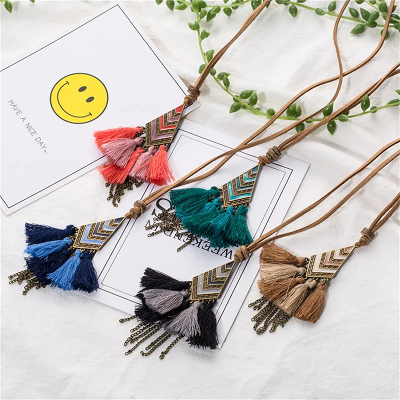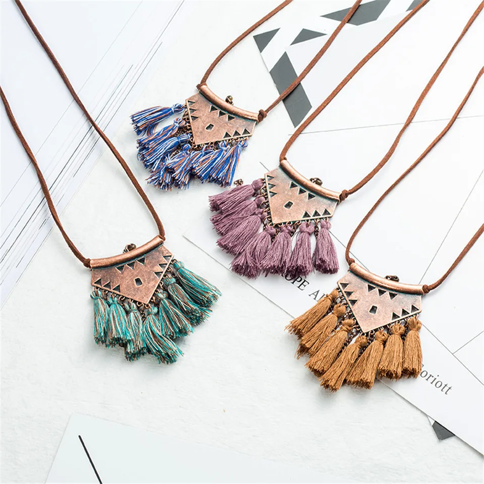 Finest New bohemian female long tassel pendant necklace Vintage winter sweater cowhide chain necklaces wom