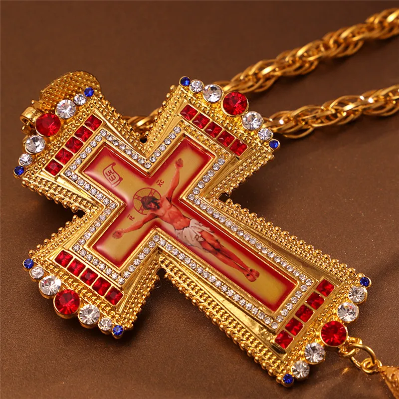 Orthodox Pectoral Cross Collares Crown Religious Icon byzantine Catholic Crucifix Necklace Confirmation Pendant Long Necklace,120CM Long Necklace Orthodox Greek Pastor Church Cross Jesus Crucifix Pendants Religious Gold Necklace Collares de moda 2019, 120CM Long Necklace Orthodox Greek Pastor Church Cross Jesus Crucifix Pendants Religious Gold Necklace Collares de moda 2019