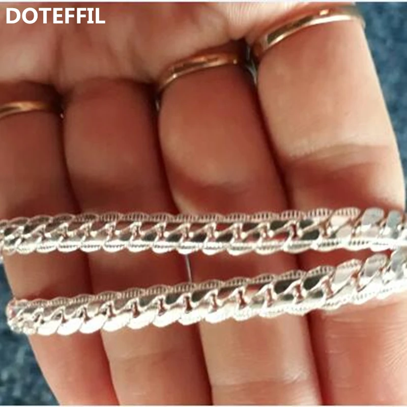 remarkable Hot Sales 925 Silver Color Necklace Charm Woman Man 50cm Silver 6MM Full Sideways Necklace Fashion