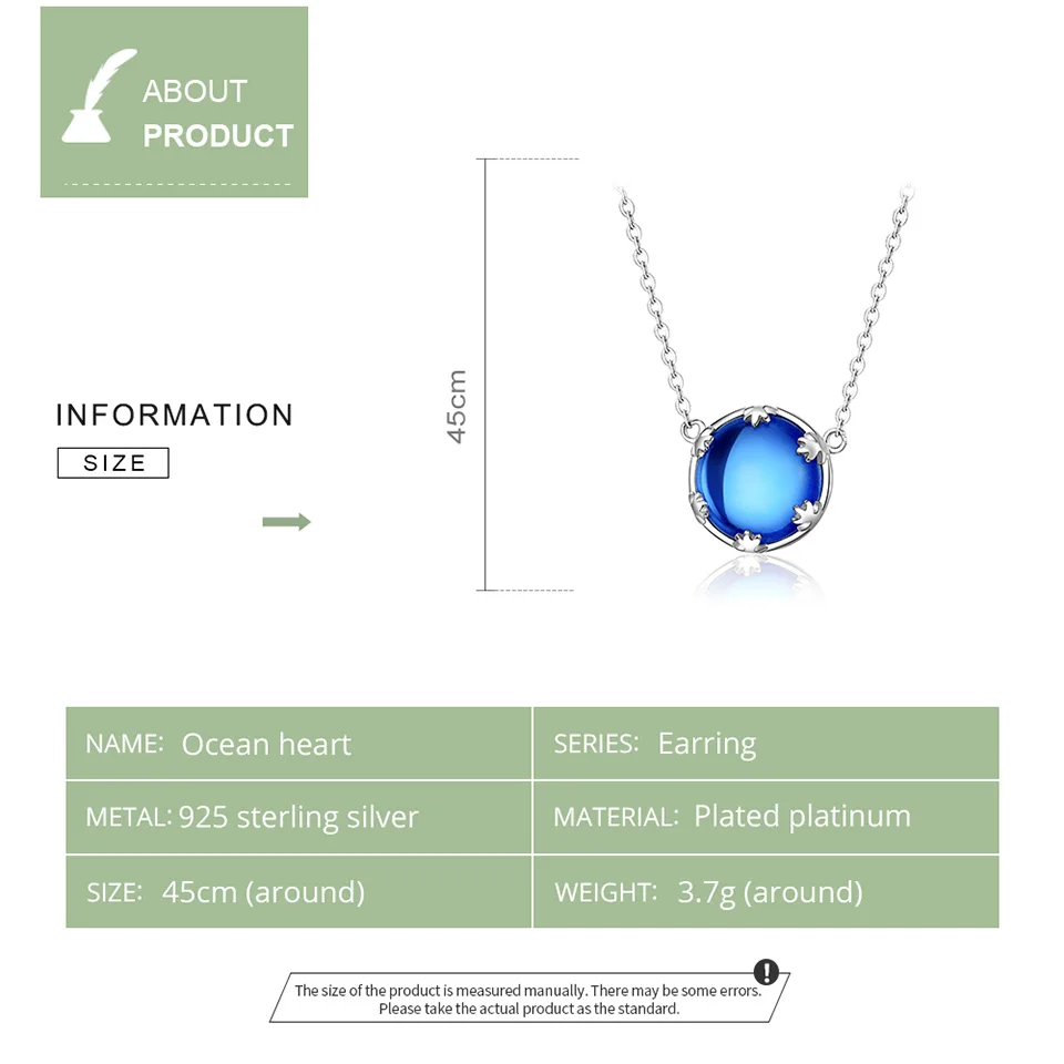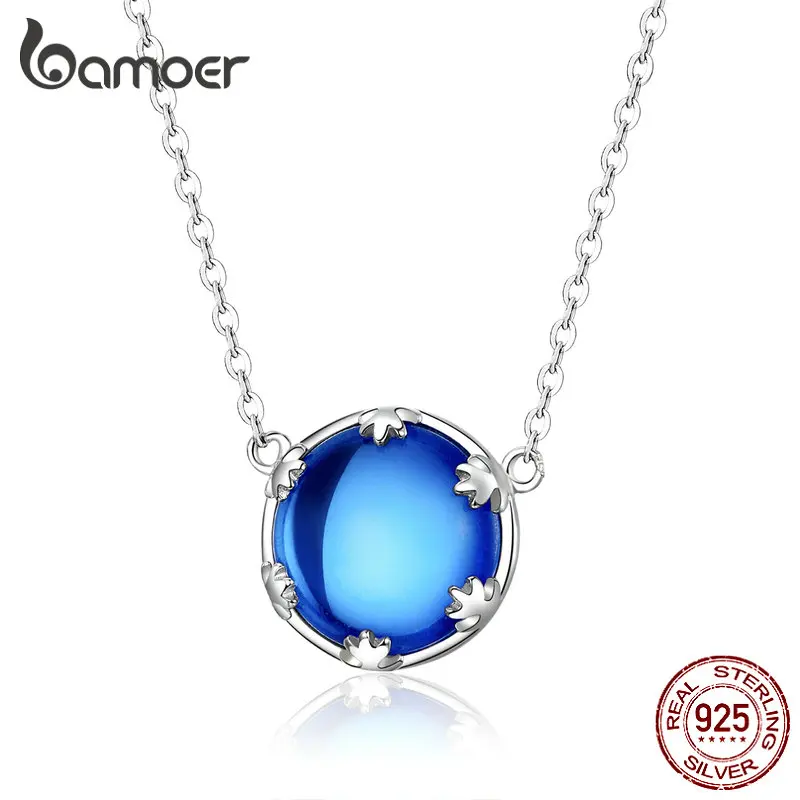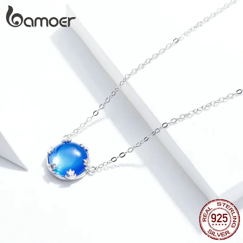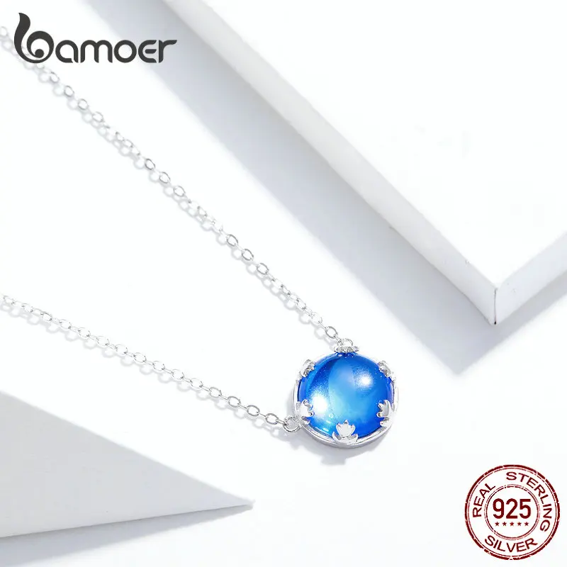 Most effective BAMOER Classic 925 Sterling Silver Blue Ocean Crystal Pendant Necklaces Women Fashion Jewelry Engag